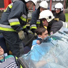 Wypadek został zaaranżowany w sobotę przed budynkiem Starostwa Powiatowego w Bolesławcu. W pozorowanym zdarzeniu brały udział dwa samochody osobowe. Trzy osoby były poszkodowane. Żeby wyjąć rannych, strażacy rozcinali auta. Całą akcję możesz obejrzeć na filmie.