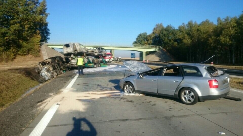 Prawdopodobnie pierwsza laweta złapała gumę i jej kierowca szukał miejsca, żeby zmienić koło. Z kolei kierowca jadącej za nią kolejnej, większej lawety z samochodami, nie zauważył, że poprzedzający go pojazd zwalnia i doszło do zderzenia i przerwania przez rozpędzone pojazdy bariery energochłonnej. Samochody wpadły do rowu i zapaliły się.