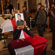 O godzinie 11.oo w kościele Oczyszczenia Najświętszej Maryi Panny w Kożuchowie odbyła się msza św. w intencji Michała. Koncelebrował ją biskup polowy Wojska Polskiego Józef Guzdek wraz z wikariuszami wojskowych parafii w Świętoszowie i Żaganiu. – W tym smutnym dniu odczuwamy żal, ale trzeba mieć też nadzieję. Nadzieję na to, że to życie ma sens – zwrócił się ksiądz biskup do zebranych. – Bo to życie, które zostało nam dane, to nie tylko czas, ale także zadanie. Zastanawiamy się, dlaczego Michał umarł tak młodo. W tym wieku człowiek zaczyna dopiero swoje dorosłe życie, zaczyna snuć plany, zastanawiać się, co będzie robił. Pokój Michała w jego rodzinnym domu, jego najbliżsi, przyjaciele świadczą o tym, że wojsko było jego pasją, że wiązał z nim swoją przyszłość. Myślę, że on swoje zadanie już wypełnił i zdał ten egzamin na piątkę.