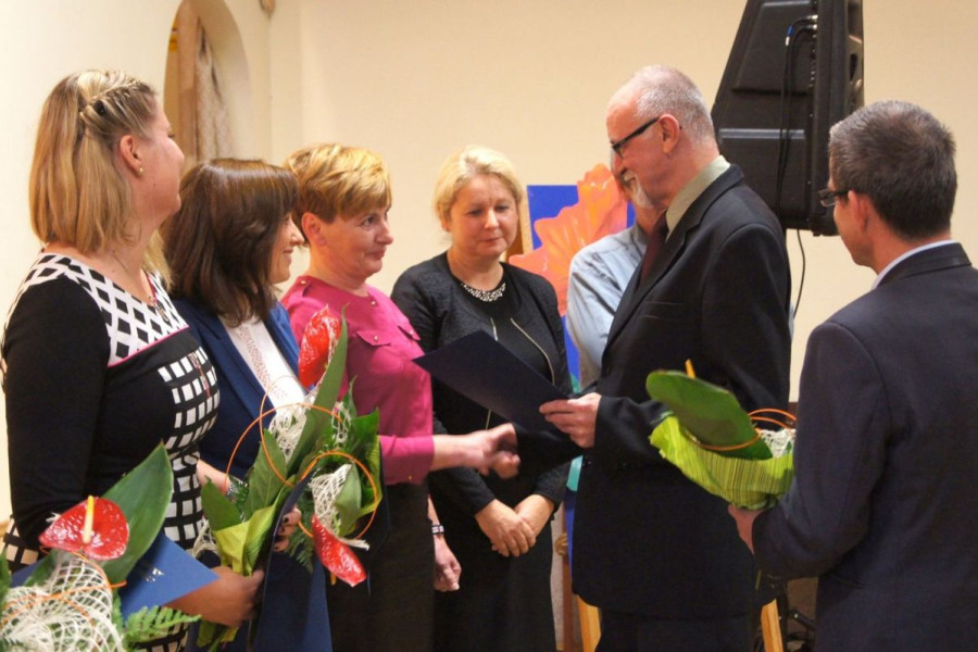 Dyrektorzy gminnych placówek wyróżnili tych nauczycieli oraz pracowników oświaty, którzy w ubiegłym roku szkolnym w sposób szczególny przyczynili się do rozwoju oraz dobrych wyników swoich szkół. Dodatkowo zgromadzeni zostali poinformowani, dlaczego Święto Edukacji Narodowej w Gminie Bolesławiec obchodzone było z dwudniowym opóźnieniem. Otóż dokładnie 14 października Arkadiusz Kruszelnicki dyrektor Szkoły Podstawowej im. Jana Brzechwy w Żeliszowie został wyróżniony nagrodą przez Ministra Edukacji Narodowej. Natomiast Małgorzata Cołokidzi dyrektorka Szkoły Podstawowej w Brzeźniku została odznaczona medalem Komisji Edukacji Narodowej. Wiązało się to z wizytą nagrodzonych w Warszawie. Uroczystość swoimi występami uświetnili uczniowie gminnych szkół. Wszystkim nagrodzonym i wyróżnionym gratulujemy.