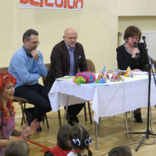 Wszystkie dzieci były pięknie i kolorowo przebrane w różne postacie bajkowe. Sala ozdobiona została plakatami i hasłami związanymi z czytaniem. Bajki czytali nam zaproszeni goście: wiceprezydent Kornel Filipowicz, kierownik CIK Orzeł Jacek Dudyński, dyrektorka MZS nr 3 Irena Sikora-Kołodyńska.