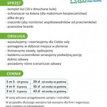 Przygotowujemy sprzęt, tłumaczymy zasady gry, sędziujemy. Komplet 10 dmuchanych kul, piłkę do gry, rozkładane bramki. Odwiedź facebookowy profil Bubble Football.