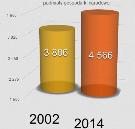 Podmioty gospodarki narodowej (prywatne i publiczne), Bank Danych Regionalnych GUS – porównanie 2002 rok i 2014 rok: