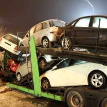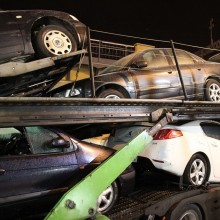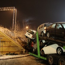 Laweta z autami uderzyła w nasyp kolejow…