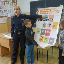 Omówiono zasady bezpiecznego poruszania się po drodze, bezpiecznej zabawy oraz to, jak właściwie zachować się w kontakcie z obcym psem. Dzieci bardzo chętnie zaprezentowały pozycję na tzw. żółwia. Najmłodszym zostały przypomniane telefony alarmowe oraz wskazane sytuacje, w których dzieci powinny wzywać pomoc, korzystając z numerów 997 lub 112.
