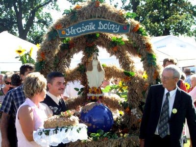 Nie mogło też zabraknąć tradycyjnego korowodu. Reprezentanci miejscowości wchodzących w skład gminy wiejskiej przygotowali wspaniałe wieńce dożynkowe. W konkursie na najpiękniejszy wieniec wygrał Kraśnik Dolny (mieszkańcy zwycięskiej wsi otrzymali 600 zł nagrody). Drugie miejsce zajęły Łaziska, a trzecie – Lipiany.