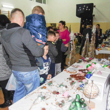 Obok strojnych choinek, w centralnym punkcie sali wyeksponowane zostały oryginalne, własnoręcznie wykonane ozdoby, wśród których znalazły się wieńce, stroiki, pomysłowe bombki, kartki świąteczne i setki innych. Amatorzy nietuzinkowych dekoracji mieli w czym wybierać.