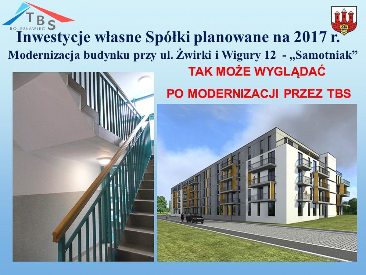 Bolesławieckie TBS planuje w przyszłym roku modernizację budynku przy ul. Żwirki i Wigury, tzw. samotniaka. Koszt inwestycji to 4,5 mln zł. Zobacz, jak niedługo może wyglądać budynek dawnego hotelu pielęgniarskiego. Do tematu wrócimy.
