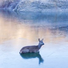 Strażacy uratowali koziołka, który wszedł na cienki lód