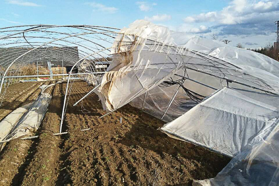 Tak wyglądają nasze tunele foliowe po dzisiejszej nawałnicy. W zeszłym roku postawione. Jesteśmy przerażeni ogromem strat.