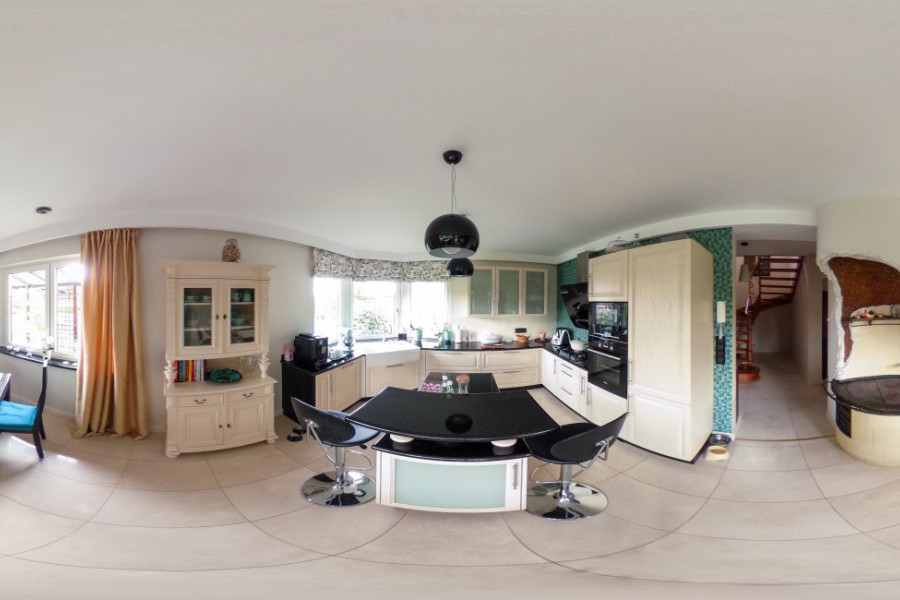 Projektantka po rozmowie z panią domu do projektu włączyła trzy ulubione kolory klientki: turkus, biel i odcień bieli: kolor kremowy. Zaczęła pracę od projektu kuchni, która miała być w ponadczasowym, klasycznym stylu, który się zawsze obroni i będzie służył latami. Ozdobą kuchni jest kredens. Chociaż jego styl jest trochę „oderwany od reszty”, jak wyjaśnia projektantka, to dodaje klimatu i przełamuje powagę wnętrza.