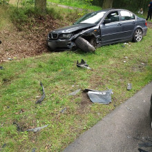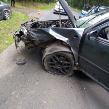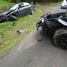 Do zdarzenia doszło w sobotę 29 lipca na drodze między Osiecznicą a Tomisławiem. Kierujący Volkswagenem mężczyzna stracił panowanie nad pojazdem, zjechał na przeciwny pas ruchu i uderzył w stojące na poboczu BMW. Kierowca tego ostatniego stał za swoim pojazdem, który w wyniku kolizji weń uderzył. Mężczyzna stojący na poboczu został lekko ranny.