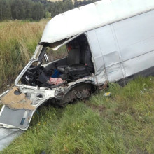 Volkswagen wpadł do rowu, BMW wypadło z drogi. Do szpitala trafili kierowcy obu pojazdów. Kierujący osobówką ma tylko ogólne potłuczenia. 66-latek z busa doznał poważnych obrażeń.