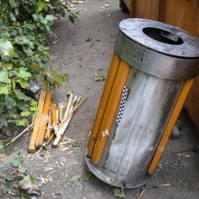 Jak się okazało, 32-letni wandal najpierw około godziny 3:00 ukradł śmietnik z przystanku przy II Armii Wojska Polskiego, a potem przeniósł go pod kontener. Rano przyszedł wraz z koleżanką i zaczął niszczyć skradzione mienie.