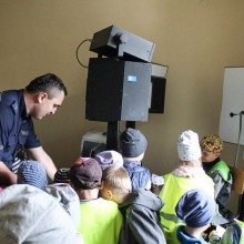 Najmłodszym bardzo spodobał się pokaz daktyloskopii. (Każde dziecko miało szansę odbić swoją dłoń na specjalnej karcie i zabrać ją na pamiątkę). Przedszkolaki miały też możliwość zobaczyć z bliska policyjny radiowóz i zrobić sobie w nim pamiątkowe zdjęcie.