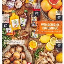 Do 30 października 2017 trwają promocje na artykuły wzmacniające odporność: czosnek 2,99 zł za opakowanie, miód (różne wielkości) 8,00 zł za opakowanie, grejpfrut 4,99 zł za kg, soki Agat 6,99 zł za sztukę, cebula 1,99 zł za opakowanie, imbir 12,99 zł za kg. Oraz mięsa bez GMO: podwawelska z szynki 14,99 zł za opakowanie, polędwica wędzona 39,99 zł za kg, szynka wieprzowa (osełka) 36,99 zł za kg