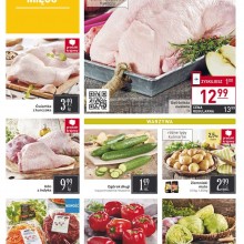 Gazetkę promocyjna można przejrzeć pod TYM LINKIEM. W promocji mięso: ćwiartka z kurczaka 3,49 zł za kg, gęś świeża owsiana 12,99 zł, udko z indyka 9,9 zł za kg. W super ofercie targi wieprzowiny: szynka wieprzowa 10,99 zł za kg, boczek bez kości 13,99 zł za kg, stek z szynki 10,99 zł za kg, golonka do pieczenia bez kości 11,99 zł za kg.