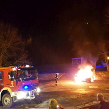 Dnia 01.02.2018 po godzinie 23 zostaliśmy zadysponowani do pożaru samochodu osobowego w Bolesławcu przy ul Gdańskiej. Po przyjeździe na miejsce zdarzenia okazało się że pożarem objęty jest cały samochód. Podaliśmy jeden prąd piany w natarciu. W pierwszej fazie pożaru działaliśmy sami.