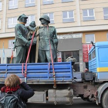 Pomnik został zdjęty z cokołu w sobotę przy pomocy 40-tonowego dźwigu. Ważące ponad 3,5 tony figury ciężarówka przewiozła do magazynu LPGK. Tam też trafiły płaskorzeźby. W przyszłości eksponowane będą wraz z podobnymi pamiątkami w lapidarium, które zostanie stworzone przez Muzeum Miedzi.