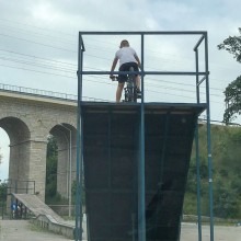 To może skończyć się tragicznie. Młodzi chłopcy zjeżdżają na rowerach ze zdezelowanych pochylni na skateparku koło wiaduktu, bez odpowiedniego zabezpieczenia – jak na przykład kask.