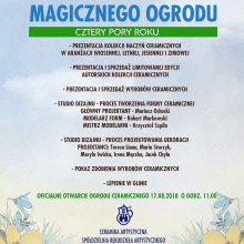 Zapraszamy na prezentację ogrodu ceramicznego „Cztery Pory Roku” od 15 do 19 sierpnia 2018 r., od godz. 11.00 do 18.00. Miejsce: Ceramika Artystyczna Spółdzielnia Rękodzieła Artystycznego w Bolesławcu, skwer przed zakładem.