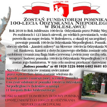 Miejski Komitet Honorowy budowy pomnika upamiętniającego 100-lecie Odzyskania Niepodległości Polski za pośrednictwem strony Urzędu Miasta zwraca się do bolesławian: