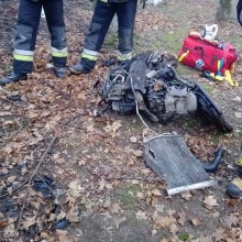 Wypadek w Ocicach. 19-letni kierowca citroena wjechał w drzewo fot. OSP Nowogrodziec