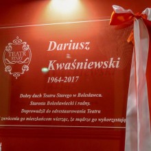 Dariusz Kwaśniewski doprowadził do remontu Starego Teatru. Zawsze kibicował działaniom Młodzieżowego Domu Kultury. Tablica upamiętnia jego imię i zaangażowanie.