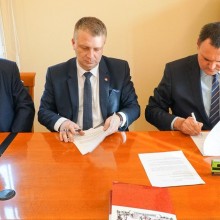 Starosta Tomasz Gabrysiak, wicestarosta Mirosław Horzempa i burmistrz Robert Relich podpisali umowę o wspólnym finansowaniu inwestycji. Wykonawców wyłoni przetarg.
