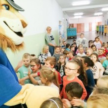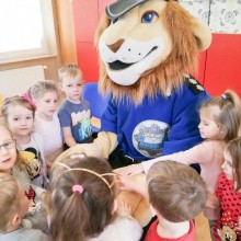 Specjalnym gościem spotkania z najmłodszymi był Komisarz Lew, na widok którego dzieci bardzo się ucieszyły. Przedszkolaki chętnie witały się z policyjną maskotką i pozowały do pamiątkowych zdjęć.