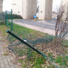 Zmasakrowane ogrodzenie starego skateparku
