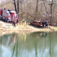 Mundurowi ze Specjalistycznej Grupy Ratownictwa Technicznego „Bolesławiec” wyciągnęli pojazd z wody. Okazało się, że był to... zardzewiały wrak.