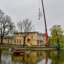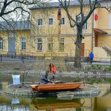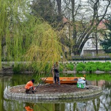 Wiosennie na plantach: nowa wierzba na wysepce, łabędzica wysiaduje jaja fot. UM Bolesławiec