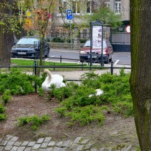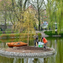 Wiosennie na plantach: nowa wierzba na wysepce, łabędzica wysiaduje jaja