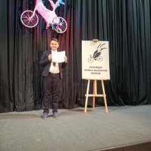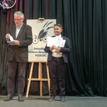 W swojej prozie młody recytator bardzo sugestywnie przedstawił rozterki i niepowodzenia współczesnego ucznia, czym rozbawił zarówno widzów, jak i samą komisję konkursową.