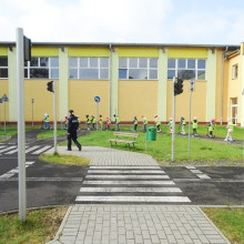 Uczniowie z uśmiechem na twarzy i dużym zaangażowaniem uczestniczyli w manewrach. Część dzieci jeździła na hulajnogach, cześć odgrywała pieszych. A jeszcze inni... stworzyli wirtualny samochód.