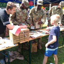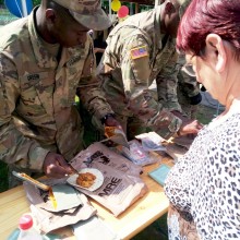 Stacjonujący w Bolesławcu żołnierze US Army chętnie uczestniczą w różnego rodzaju lokalnych imprezach. Nie zabrakło ich w sobotę na Dniu Dziecka, gdzie zaprezentowali ćwiczenia rozciągające oraz pokazali jak wyglądają racje żywieniowe w armii amerykańskiej. Kto był ciekawy smaku wojskowego jedzenia mógł spróbować go na miejscu lub zabrać do domu. Chętnych nie brakowało...