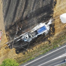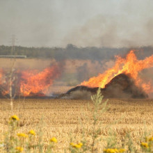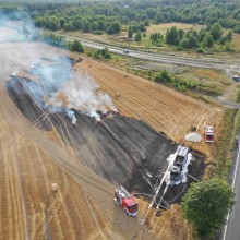 Do zdarzenia doszło w środę (24 lipca) na polu, między Bolesławcem a Łaziskami (niedaleko ronda). Zapalił się samochód ciężarowy, przewożący wapno do nawożenia pola. Pojazd stanął w płomieniach po tym jak wjechał na pole. Od płonącej ciężarówki zajęło się ściernisko oraz słomiane bele. Z pożarem walczyły cztery zastępy straży pożarnej. Akcję gaśniczą utrudniał porywisty wiatr. W zdarzeniu nikt nie został ranny.