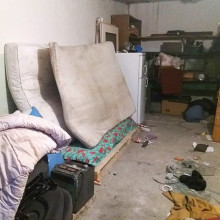 Właśnie policja zakończyła interwencję w naszym garażu. Młodzi ludzie uwili sobie tam gniazdko miłości i wprowadzili się ze swoimi gratami. Łóżko przygotowane z palety, na niej 3 materace. Lodówka, telewizor, mikrofalówka, fotele z auta, jedzenie i inne przedmioty codziennego użytku.