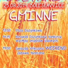 Tak jak co roku będzie można zobaczyć piękne wieńce i barwny korowód. Nie zabraknie także występów artystycznych między innymi: Zespołu Pieśni i Tańca „Jutrzenka” oraz Zespołu Pieśni i Tańca Ziemi Bolesławieckiej. Nowością będzie koncert piosenek Zbigniewa Wodeckiego i Anny Jantar w wykonaniu Katarzyny Rzepki. Publiczność będzie mogła brać udział w konkurencjach sprawnościowych, a także czynnie uczestniczyć w warsztatach pszczelarskich.