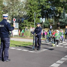 Dla przedszkolaków z przedszkola przy ul. Dolne Młyny była to wyprawa na drugi koniec miasta. Na miejscu czekała na nich niesamowita pani Ania Kublik-Rościszewska, rzeczniczka komendy wraz z trzema policjantami. Dzieci miały okazję wysłuchać i utrwalić zasady bezpiecznego poruszania się po drodze. Obejrzały i zasiadły w policyjnym radiowozie. Dzięki pomocy rodziców, którzy zaangażowali się w organizację tego wyjątkowego przedsięwzięcia, udało się przetransportować i dostarczyć do miasteczka hulajnogi i rowery, które dzieci zabrały z domu.