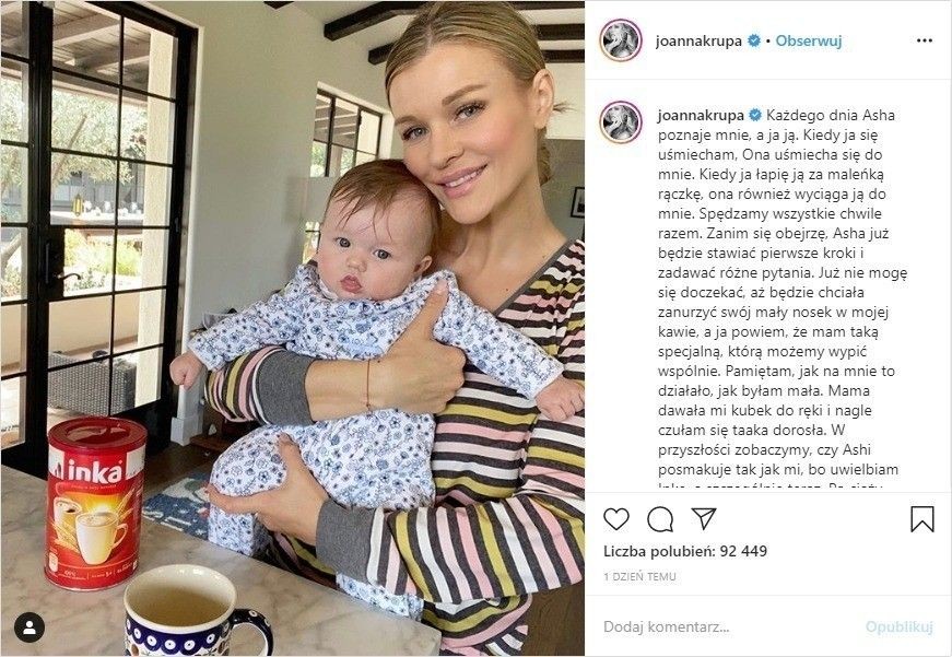 O tym, że celebryci uwielbiają bolesławiecką ceramikę, wiadomo nie od dziś. Joanna Krupa, modelka, aktorka, obrończyni praw zwierząt i telewizyjna jurorka, opublikowała w serwisie Instagram zdjęcie z córeczką i kubkiem kawy zbożowej. Kubkiem – dodajmy – z naszego lokalnego złota, czyli ceramiki.