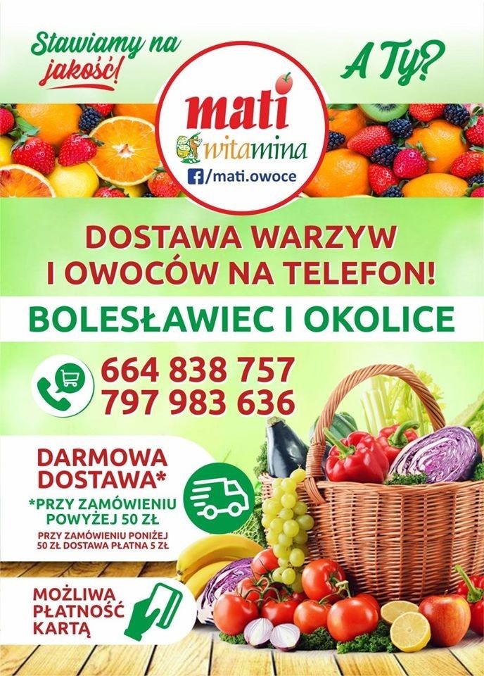O zdrowotnych walorach warzyw i owoców nikogo nie trzeba przekonywać. W związku z zaistniałą sytuacją z koronawirusem i akcją #zostańwdomu oraz w trosce o zdrowie naszych Klientów oferujemy owoce i warzywa z dostawą do domu. Zamówienia telefoniczne przyjmujemy od 7:00 do 13:00.