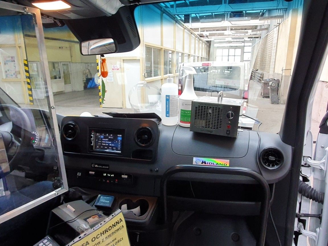 - Na wyposażeniu pojazdów znajdują się środki dezynfekujące dostępne dla podróżnych i kierowcy.