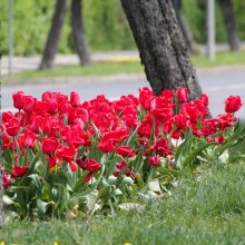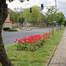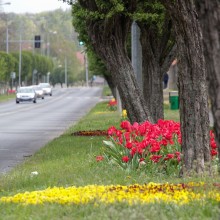 Mimo stanu epidemii miasto dba o wygląd ulic. Aleja Tysiąclecia właśnie zakwitła tulipanami. Są żółte i czerwone. Do tego okrągłe rabaty co kilkadziesiąt metrów, w podobnych kolorach.