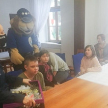 Drobne słodycze, chwila rozmowy i uśmiech na twarzach dzieci wywołany przez Komisarza Lwa.