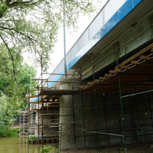 Przeprawa przez rzekę Bóbr przechodzi kompleksową renowację. Najcięższe prace przy remoncie podpór i elementów konstrukcji przęseł już zostały wykonane. Piesi mogą swobodnie poruszać się po nowym chodniku. Drogowcy przystąpili do renowacji dwóch pasów jezdni.