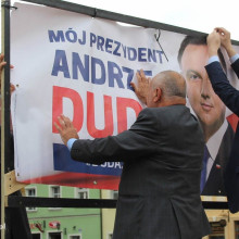 Jarosław Gowin zawiesił plakat Andrzeja Dudy na skwerze w Rynku