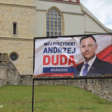 Jarosław Gowin zawiesił plakat Andrzeja Dudy na skwerze w Rynku fot. istotne.pl