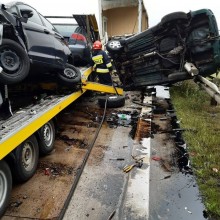 Ze wstępnych ustaleń wynika, że bus-laweta najechała na tył ciężarówki. W wyniku zdarzenia ranny został kierowca busa-lawety. Był zakleszczony w pojeździe i strażacy musieli użyć specjalistycznego sprzętu żeby kierowcę uwolnić. Mężczyzna z urazami nóg został przewieziony do szpitala w Legnicy. Uszkodzone zostały także 4 samochody przewożone na lawecie. W sumie w wyniku zdarzenia uszkodzonych zostało 6 pojazdów.